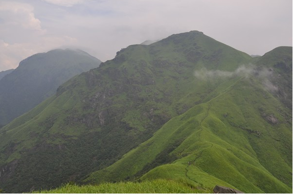 山脊路上,翻過(guò)一座又一座的山頭,全程海拔落差在1200多米--1900米之間起伏連綿,滿目的綠色也隨之少限延伸。